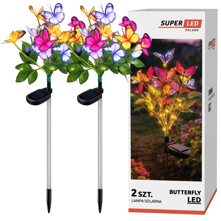 2x Lampa solarna LED wbijana Motyle
