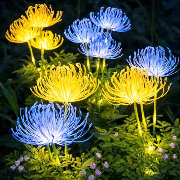 ✔️ 2x lampę solarną LED – kwiat chryzantemy (fioletowy, różowy, biały, żółty) - kolory wysyłane losowo