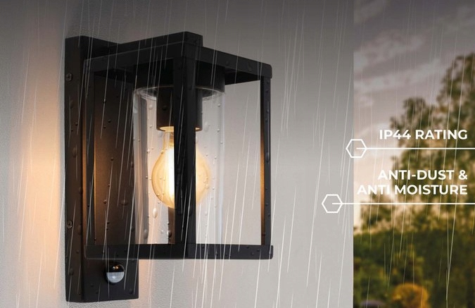 Klasa szczelności IP44 zabezpiecza lampę przed warunkami atmosferycznymi.