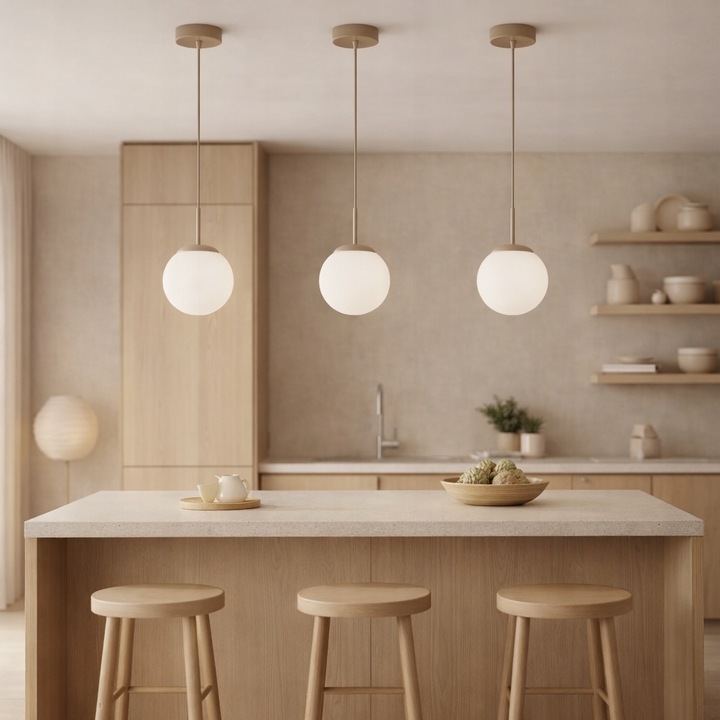 Jej kaszmirowe, beżowe wykończenie oraz kuliste, mlecznobiałe klosze tworzą niepowtarzalny efekt – idealny zarówno do wnętrz klasy premium, jak i nowoczesnych mieszkań.