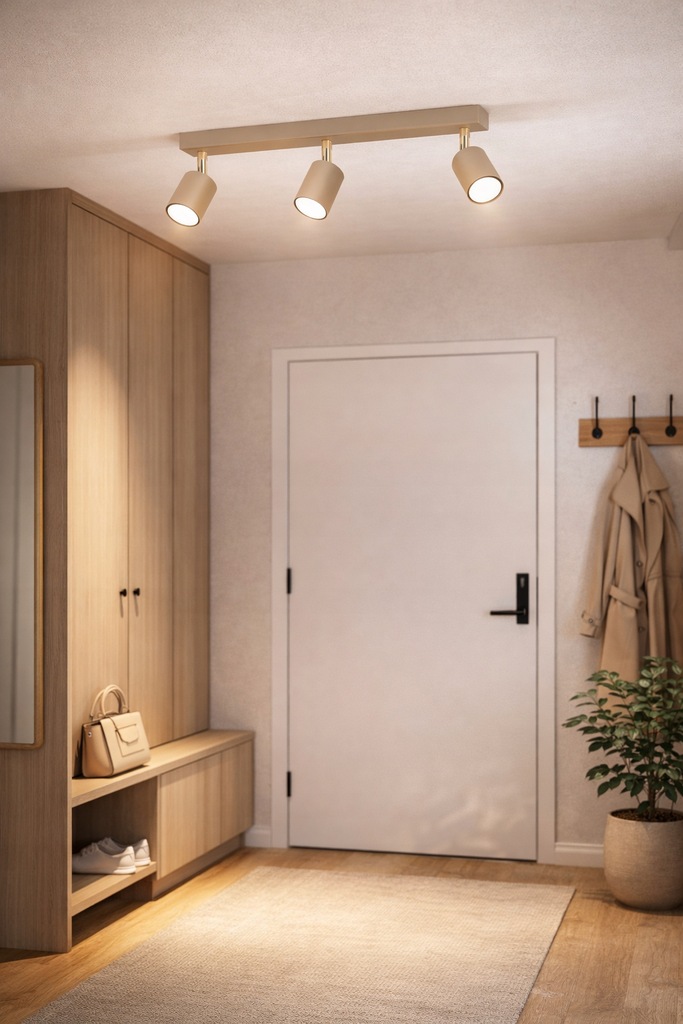 ➡️ W kuchni – trzy spoty świetnie doświetlą blat, wyspę lub strefę jadalnianą.