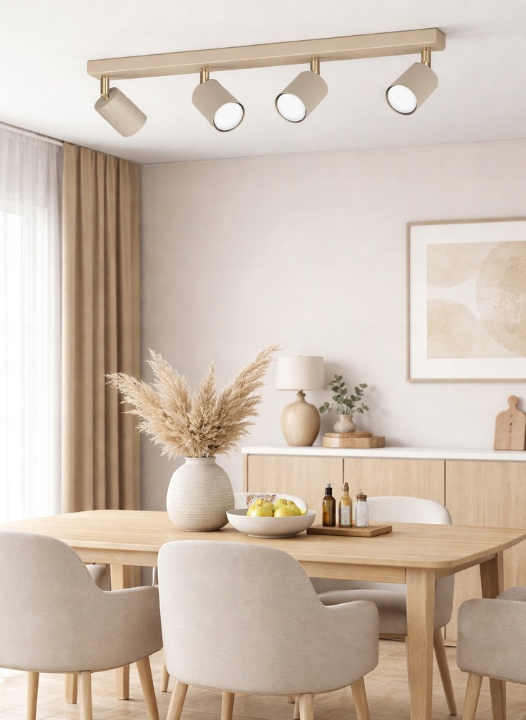 ➡️ W kuchni – trzy spoty świetnie doświetlą blat, wyspę lub strefę jadalnianą.