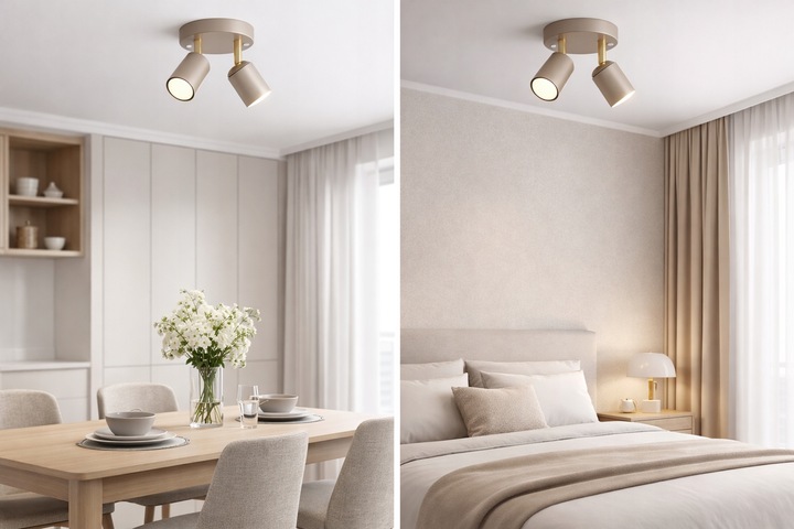 ➡️ W kuchni – trzy spoty świetnie doświetlą blat, wyspę lub strefę jadalnianą.