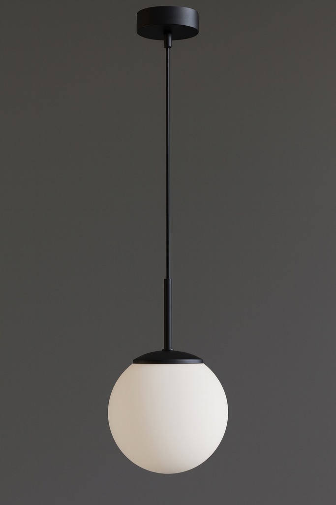 Lampa Wisząca Sufitowa Czarna Żyrandol Biała Kula Mleczna LED E27