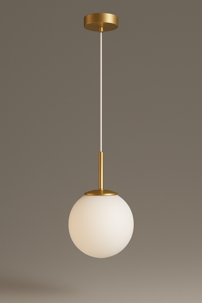 Lampa Wisząca Sufitowa Złota Żyrandol Biała Kula Mleczna E27