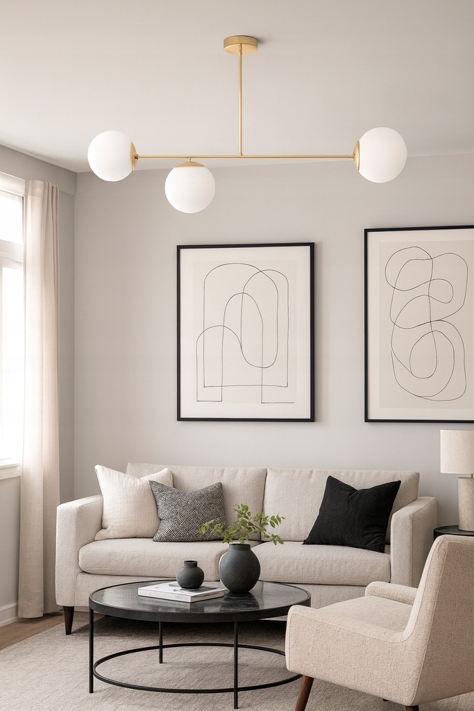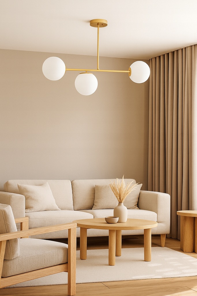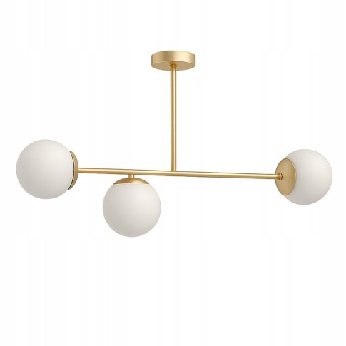 Jej złote, satynowe wykończenie oraz kuliste, mlecznobiałe klosze tworzą niepowtarzalny efekt – idealny zarówno do wnętrz klasy premium, jak i nowoczesnych mieszkań.