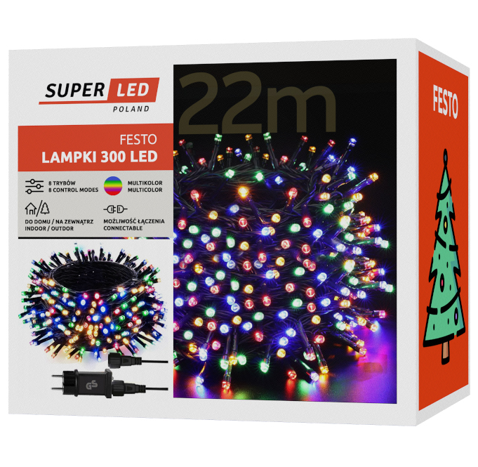 Zestaw zawiera aż 300 jasnych i energooszczędnych diod LED, które zapewniają wyjątkowy efekt świetlny.