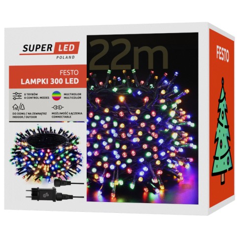 Ten zestaw lampek choinkowych zawiera aż 300 energooszczędnych diod LED rozmieszczonych na kablu o długości 22 metry!