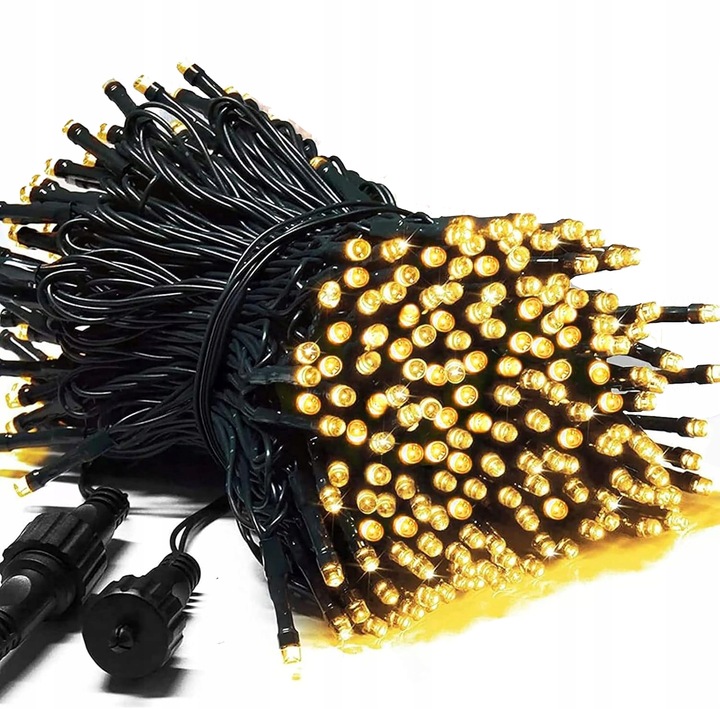 Lampki choinkowe 300 LED Świąteczne 20m Białe Ciepłe Zasilacz IP44 8 trybów