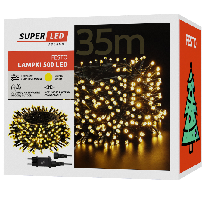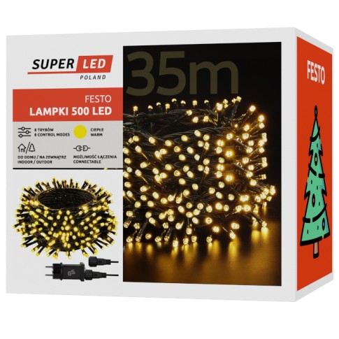 Lampki choinkowe 500 LED 35m Białe Ciepłe IP44 8 trybów