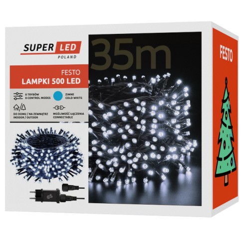 Lampki choinkowe 500 LED 35m Białe Zimne IP44 8 trybów