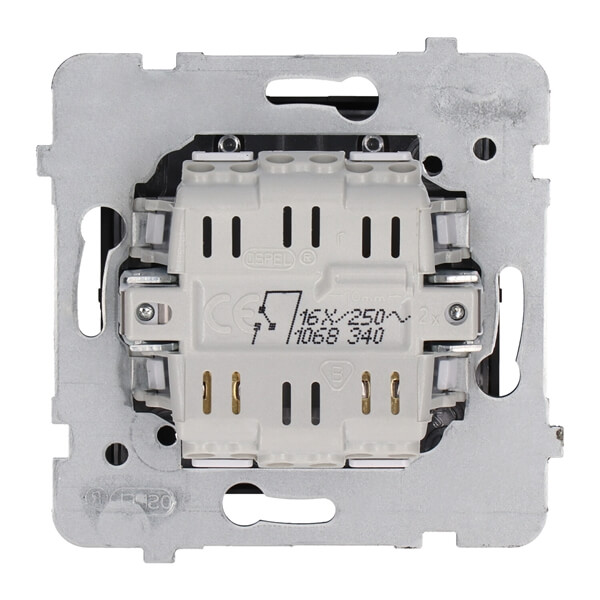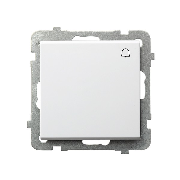 Łącznik działa jako przycisk zwierny, odbijający. Służy do załączania dzwonka, gongu. Do kompletu wymagana ramka. Można stosować do systemów ramkowych wielokrotnych.