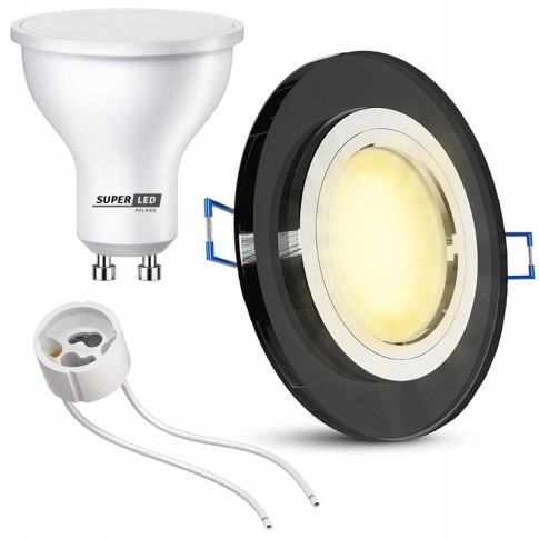Zestaw Oprawa halogenowa GU10 SZKLANA + Żarówka GU10 LED 6W + gniazdo